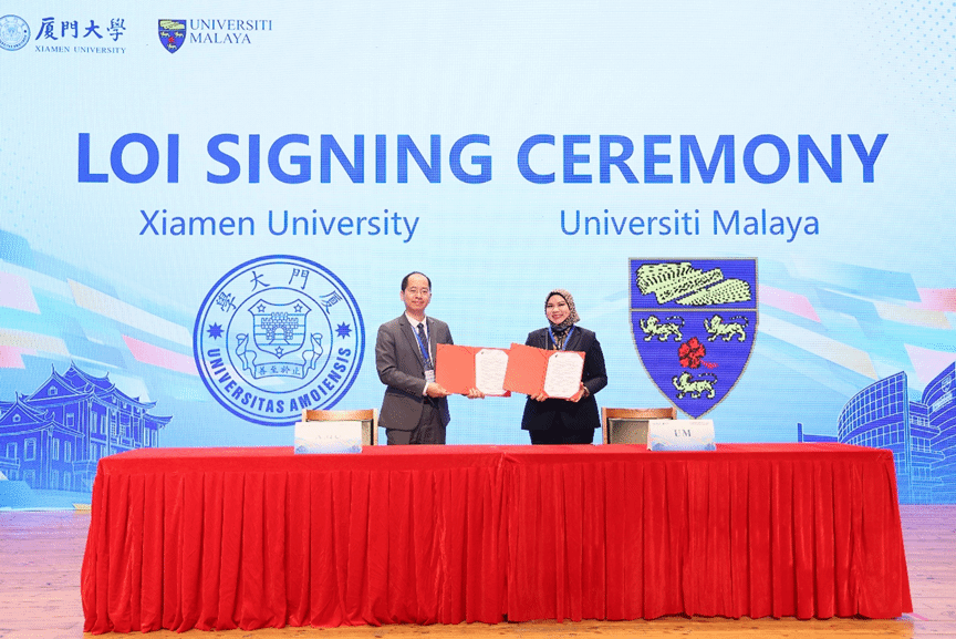 厦门大学副校长尤延铖教授代表厦门大学国际关系学院/南洋研究院与马来亚大学高等研究院、人文与社会科学学院、亚欧学院就合作研究与师生交流方面签订合作意向书。